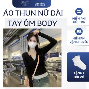 Áo Thun Nữ Dài Tay Ôm Body Cổ V Có Khuy