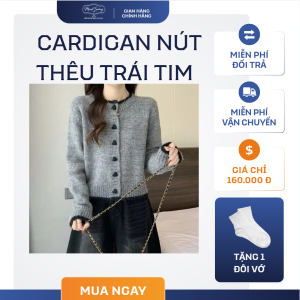Khoác cardigan nút thêu trái tim