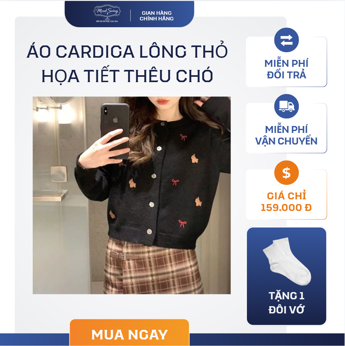 Áo Cardigan Lông Thỏ Họa Tiết Thêu Chó